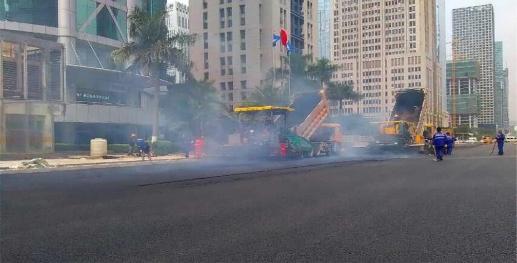 深圳灣游艇會路面攤鋪瀝青工程由本公司人員在施工中!本公司專業承接瀝青路面、瀝青攤鋪施工等交通設施工程。全國免費電話:4008-517-168