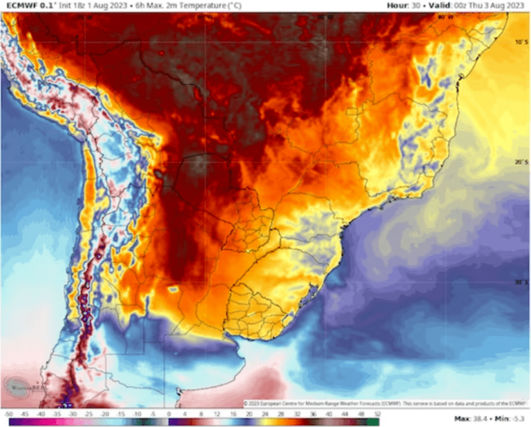 7月中旬,巴西部分地區出現異常高溫現象,氣溫超過37℃,創下該國當月最高氣溫紀錄。接著,阿根廷、玻利維亞、巴拉圭和烏拉圭等國也相繼出現異常高溫,并創下了一系列7月最高氣溫紀錄。