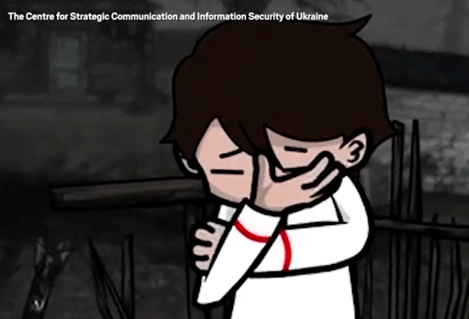 據英國《地鐵報》報道,視頻開頭是一個年輕的男孩在滿目瘡痍的廢墟旁哭泣,隨后出現的烏克蘭家庭畫像透露了男孩哭泣的原因。