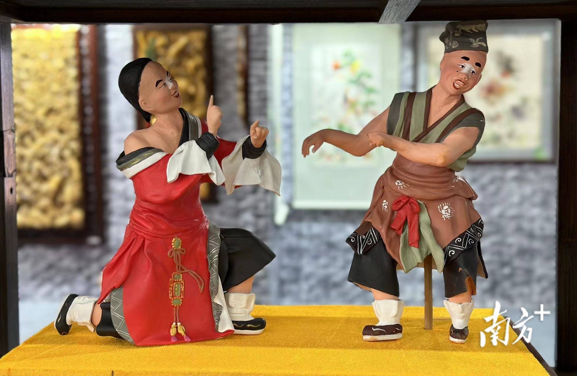 此外,精美細致的潮繡,憑借其特有的棉絮墊高技藝,吸引觀眾駐足欣賞;活靈活現的大吳泥塑,運用人物靈動俏皮的造型,再現戲曲故事場景。