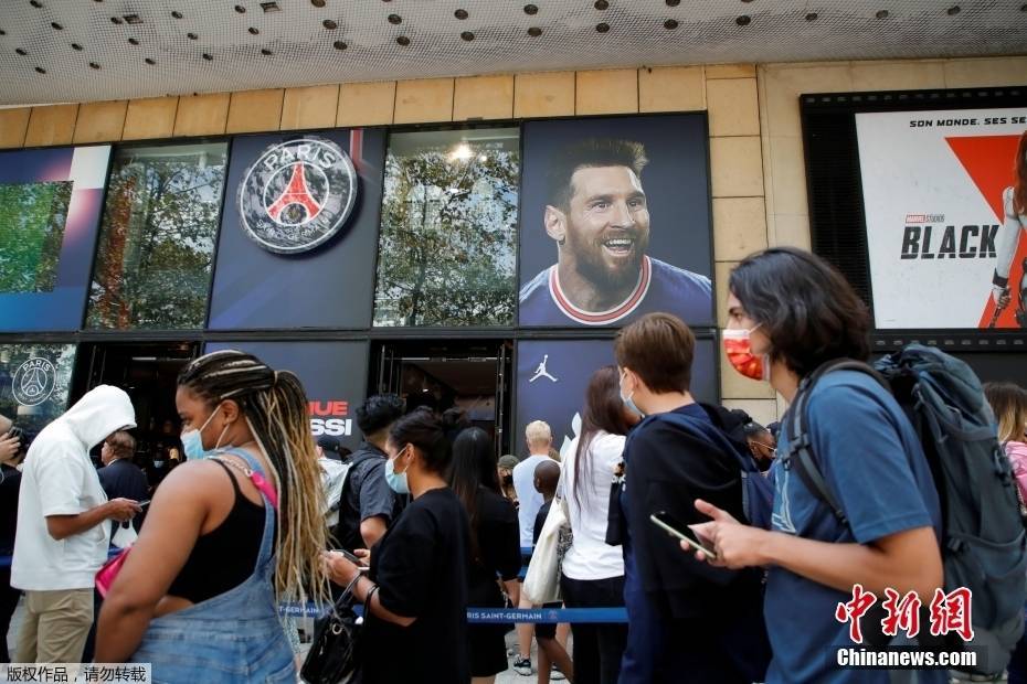 資料圖:梅西與巴黎圣日耳曼的簽約后,眾多大巴黎的球迷前來購買梅西的30號球衣,甚至在商店門口排起了長隊。
