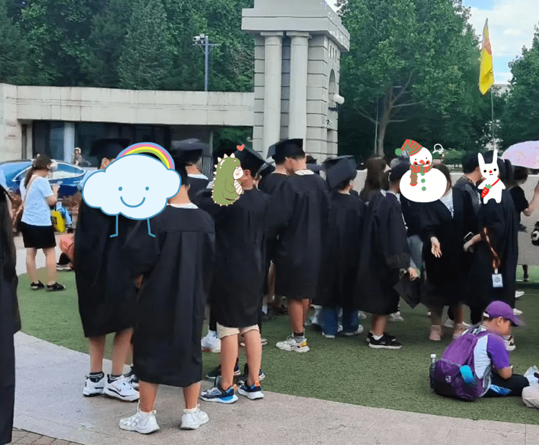 后有清華北大的校門口擠滿了等著合影的研學團,大家穿著厚厚的學士服排隊,逐漸從一臉興奮變成生無可戀。