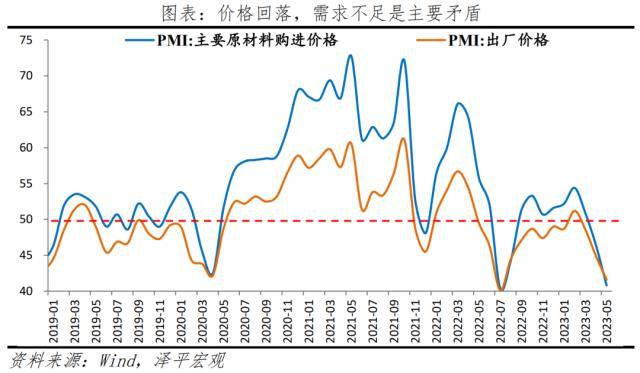 第三,主動去庫存階段,量價齊跌。原材料庫存、采購量和供應商配送時間分別為47.6%、49.0%和50.5%,比4月變動-0.3、-0.1和0.2個百分點。后續需政策加力擴大需求,帶動企業利潤改善。
