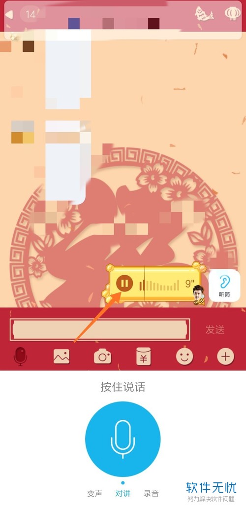 3. 之后我們就進入了發送語音的界面,我們按住語音按鈕就可以開始輸入語音,如圖。