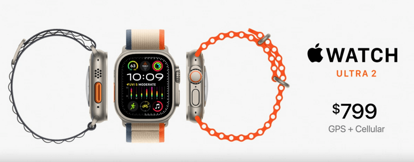 價格方面,Apple Watch Series 9起售價399美元,Apple Watch Ultra 2售價799美元。