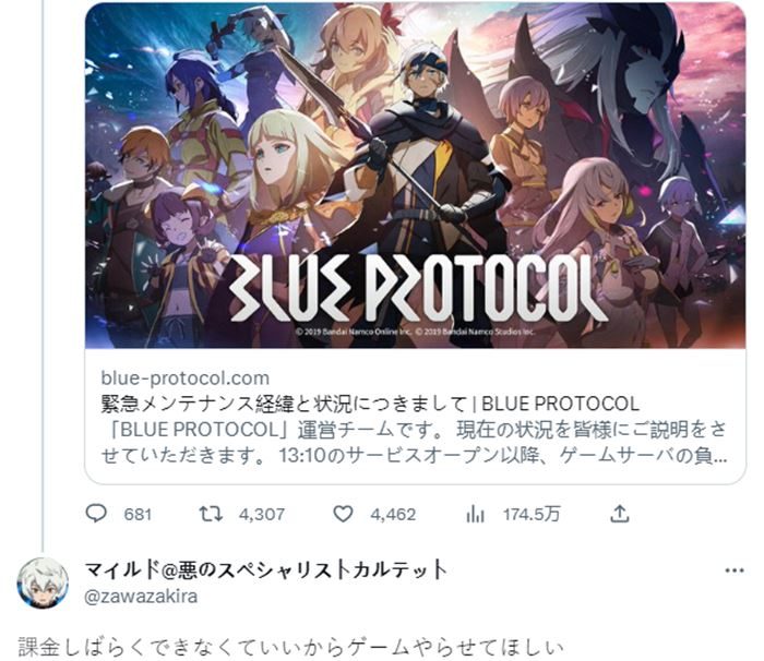 昨日,萬代南夢宮跳票多年的二次元mmo網游《藍色協議(Blue Protocol)》終于迎來了開服第一天,許多玩家一大早便迫不及待地守在了電腦屏幕前。然而當時誰都沒能想到,他們將迎來的是長達一天的維護地獄。