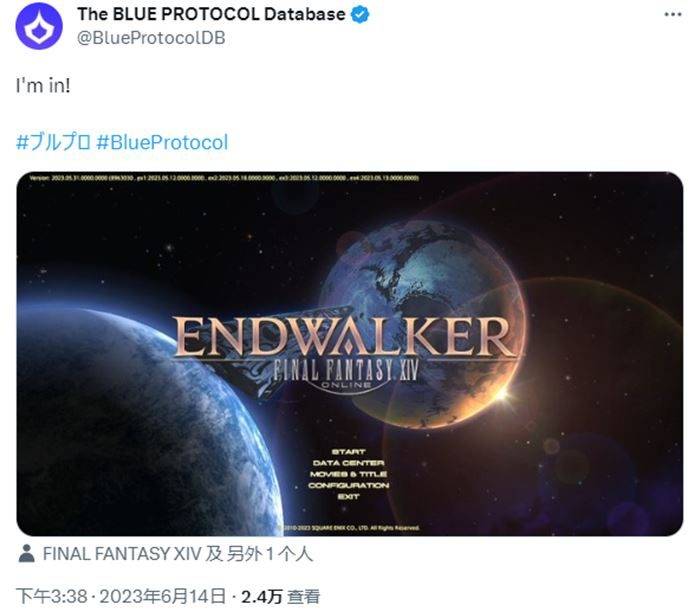 雖然官方一直在更新公告,但維護結束的時間仍不斷延期。19點,20點,21點……21點半,藍色協議終于重新開服了。然而折騰了一整天,這時能夠成功登陸游戲的玩家仍少得可憐。有人在推特上進行了投票統計,大概只有4%的玩家成功登入了游戲里面。要說進入這款游戲究竟有多難?連藍色協議數據庫的官方賬號都忍不住發推吐槽自己進入了……《最終幻想14》。