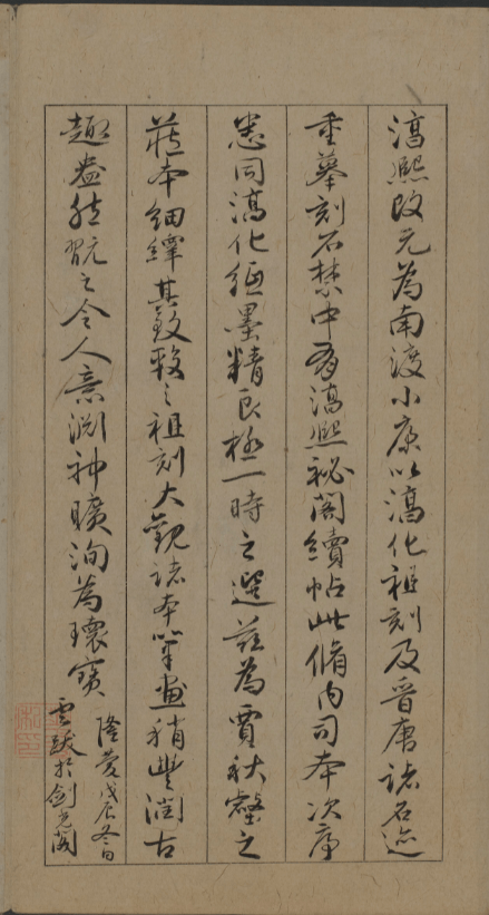 此本南宋時曾經賈似道所藏,據馬成名《海外所見善本碑帖錄》著錄,該本現存又有明代無錫著名藏家華云(補庵)藏印及跋文,其文云:“淳熙改元為南渡小康,以淳化祖刻及晉唐諸石跡重摹刻石禁中,有《淳熙秘閣續帖》。此修內司本次序悉同《淳化》,紙墨精良,極一時之選。茲為賈秋壑之藏本,細繹其致,較之祖刻、《大觀》諸本筆畫稍豐潤,古趣盎然,玩之令人意淵神曠,洵為瑰寶。隆慶戊辰冬日,華云跋于劍光閣。”下鈐“華云私印”。不過正如馬先生在文末注釋中所指出的那樣:“此跋寫于1568年,華云已卒,待考。”關于華云的生平和收藏,蘇州大學教授王照宇博士曾有精審的研究,他不僅根據華云行狀和墓表,確認華云卒于嘉靖庚申(1560)九月二十三日,又根據華氏后人所捐若干世藏華云遺藏,總結華氏藏品用印規律為:“華云的書畫藏品上應該鈐有‘錫山華氏補庵家藏印’朱文方印或‘錫山華氏補庵收藏印’朱文方印,這才是他本人的收藏。”至于本帖內所見“華云私印”,并未見于王博士經眼的數十件華氏舊藏,也溢出其所見的華云所用印章之外。另據王博士總結華云行書作品:“全文字體略扁,結體嚴謹,筆畫粗細濃淡對比明顯,書寫自然流暢,筆畫之間頗顯功力,露鋒筆畫較多,且牽絲處多用飛白之筆,這種書風應該是較為標準的華云行書標準件。”而此處華氏跋文則顯然于此大相徑庭,盡管點畫輕靈,結體端穩,然而筆意稍欠自然,風神難及秀潤。因此,無論是從用印方面來看,還是從題跋本身與華云卒年齟齬方面來看,還有從字體來看,修內司本《閣帖》上所存的華云題跋都存在問題,當系后人偽作。
